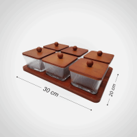 طقم تسالي 6ق بغطا خشب وصنيه 1423
